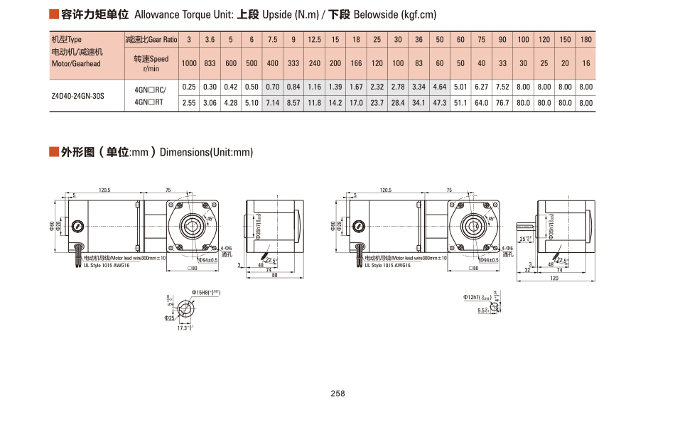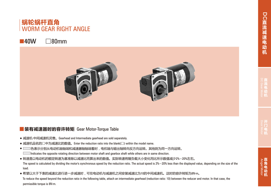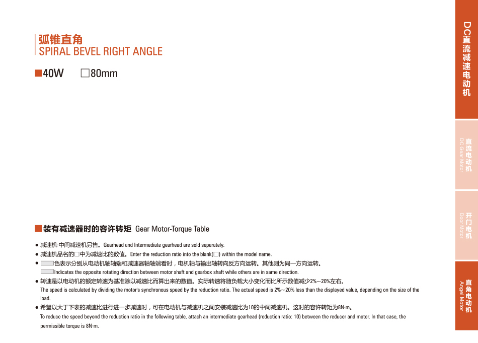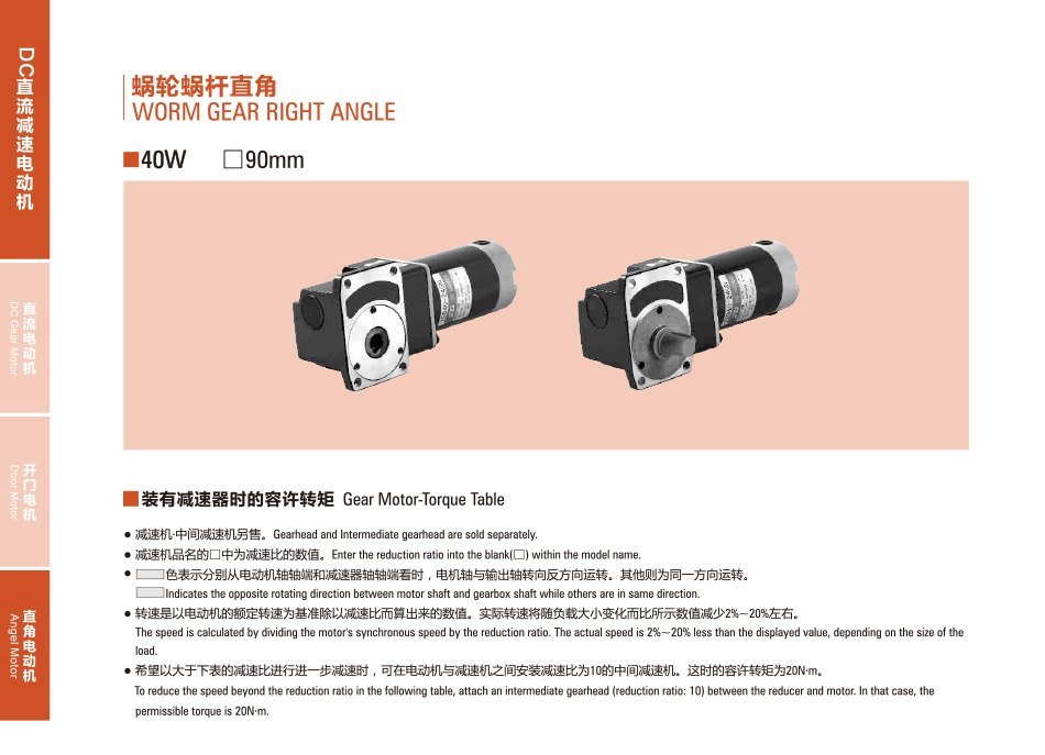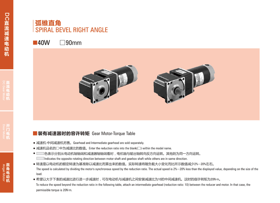 定制:Z4D40-24GN-30S DCブラシ付き直角モータ