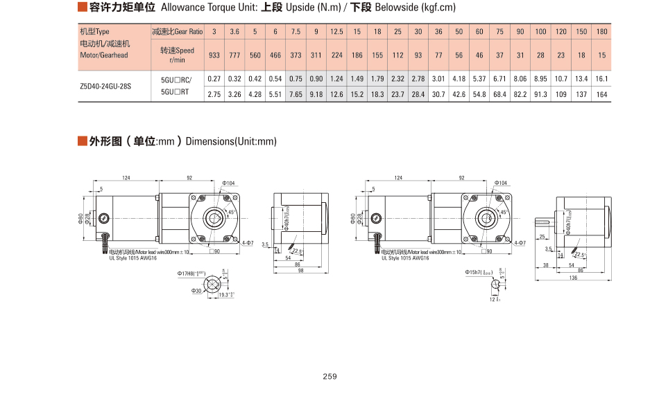 Z4D40-24GN-30S DCブラシ付き直角モータ