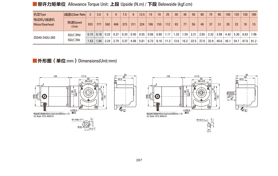 Z5D120-24GU-26S DCブラシ直角モータ
